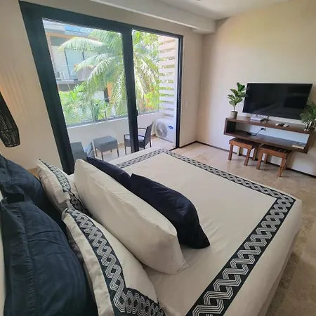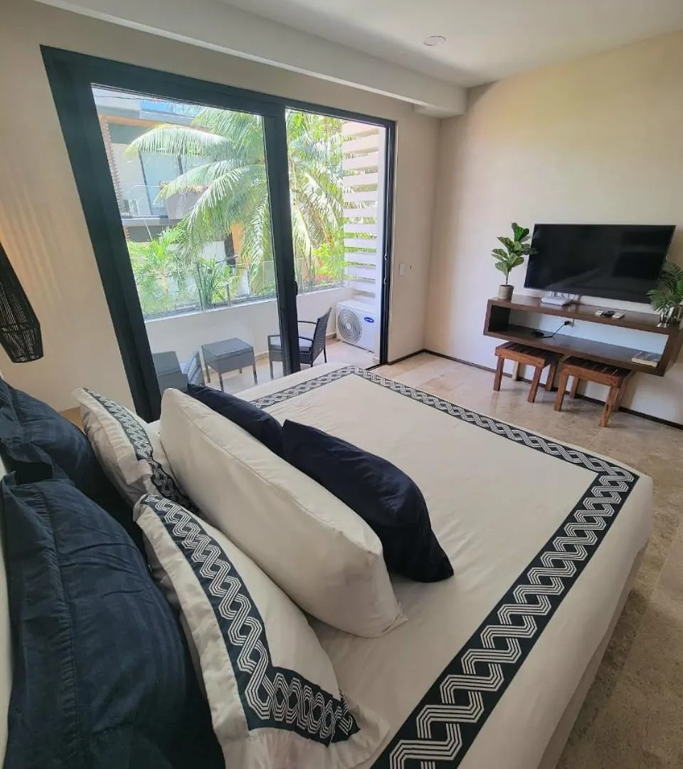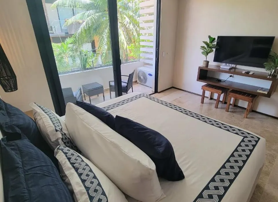 Das 40 m² große Apartment Disfruta El Encanto Bohemio En Playa Del Carmen liegt im Bezirk Zentrum, etwa 3 Kilometer vom Gran Coyote Golf entfernt, und bietet ein Fitnesscenter. Das 1-Zimmer-Apartment verfügt über eine Terrasse, die sich auf die Stadt öffnet.